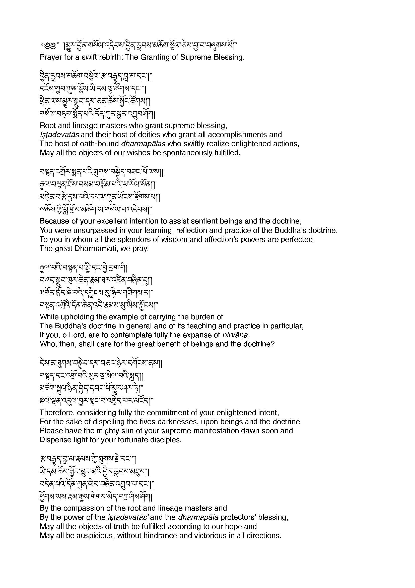 Swift rebirth prayers
